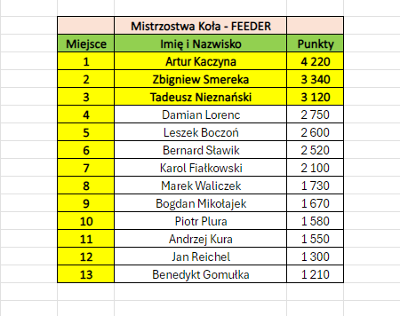 Mistrzostwa Koła Kolejarz w dyscyplinie feederowej